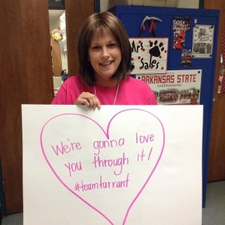 The time came for this teacher to share her news with the staff. She approached me before a faculty gathering, and asked me if I could give her a few minutes to talk to the group. We made a plan for her to speak at the end. Her number one request was that I couldn’t touch her or look at her when she spoke, because she would cry (she knows me well…I struggle with NOT hugging people). I promised to do my best, and we carried forth with the meeting. When the time came, I looked to her, cueing her to begin sharing. About 30 seconds went by before I was sitting at her feet, holding her hand (it was just a promise I couldn’t keep!) as she shared her news with our school family. There were tears, hugs, and yes…some laughter about her being too stubborn to lose this battle! Our family gathered around her, and from that moment we were #teamtarrant.