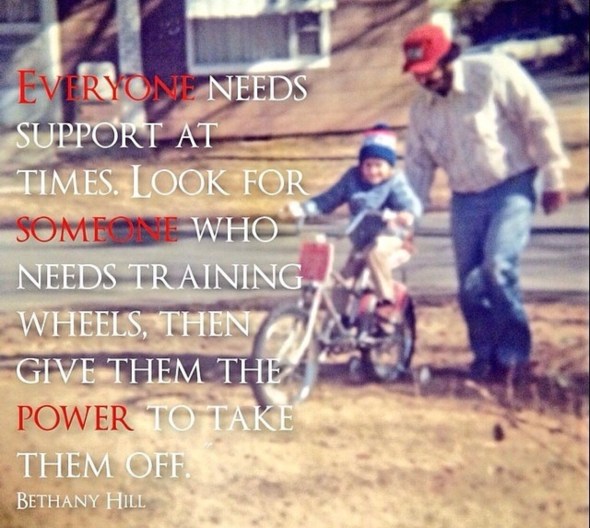 “You’re gonna fall over sometimes. You’re gonna run into things sometimes. That’s part of doing things by yourself. Wouldn’t you rather do that, than have me holding onto your back forever?”