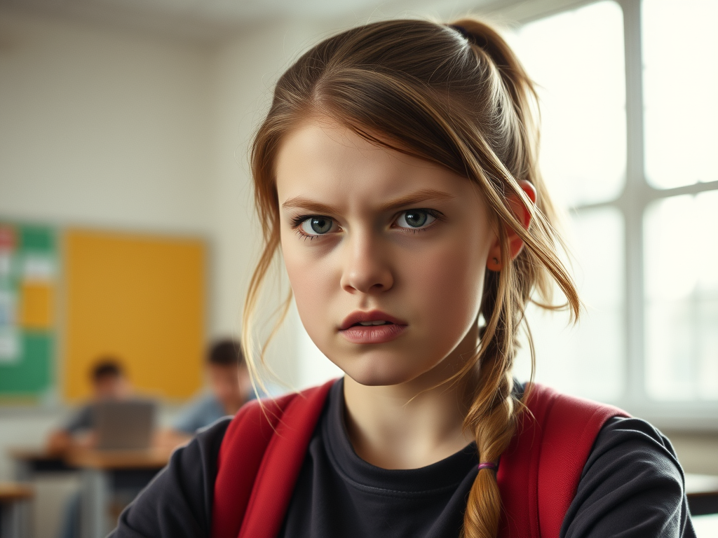 Middle School (Grade 7: Slams locker, storms into class, swears)